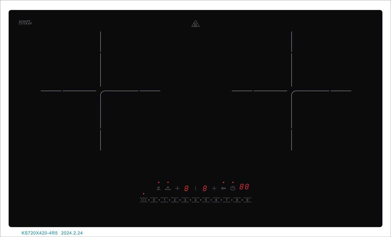 Hai vùng nấu cảm ứng từ mỗi bên công suất: 2400W